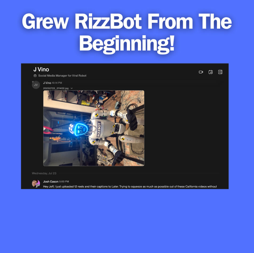 In just 90 days, Flow Media helped launch Rizbot into a global viral sensation—reaching over 200 million organic views and more than 2.5 million followers across TikTok and Instagram. What started as a creative experiment in a small workshop quickly became one of the internet’s first robot celebrities, with appearances on The Tonight Show Starring Jimmy Fallon and countless reposts across social media.From the earliest prototypes to the breakout viral moments, our team led the creative strategy, scripting, and posting cadence that fueled Rizbot’s explosive growth—making it go viral again and again with fresh, trend-driven ideas.This wasn’t a product launch or a business campaign. It was the creation of a cultural phenomenon—and Flow Media was there from the very beginning.