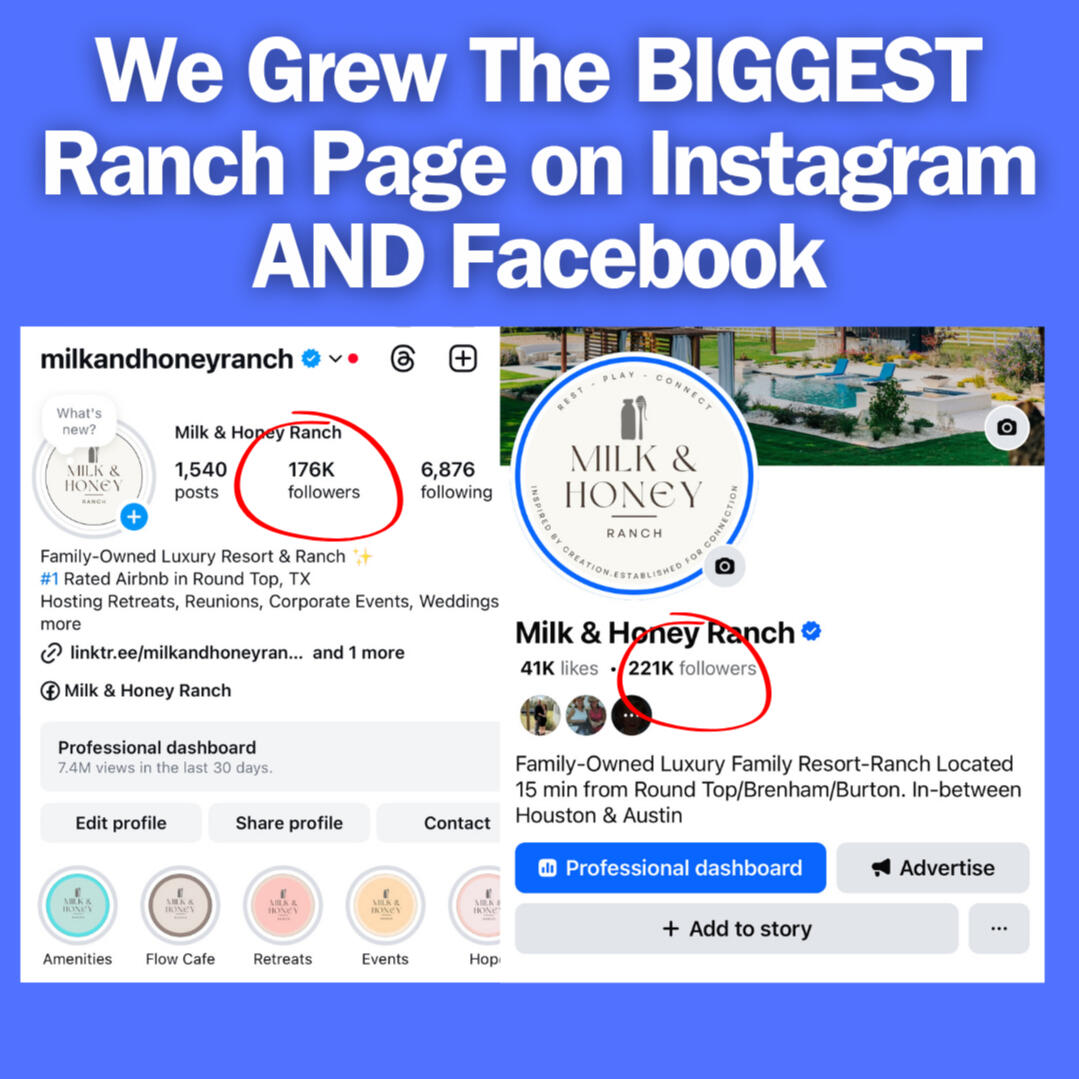 For Milk & Honey Ranch, Flow Media delivered record-breaking results. We helped grow their Facebook from 14,000 to over 200,000 followers, more than doubled their Instagram following, and significantly expanded their TikTok, YouTube, and other platforms. In total, we’ve driven over 100 million views and helped generate multiple 7-figures in organic revenue. After seeing the success, Milk & Honey Ranch brought us on for paid ads as well—where we’ve consistently delivered an average return of $23 for every $1 spent, at a six figure per month scale. Today, they are the most-followed ranch on both Instagram and Facebook, immensely successful, and we’re proud to have helped make that happen.